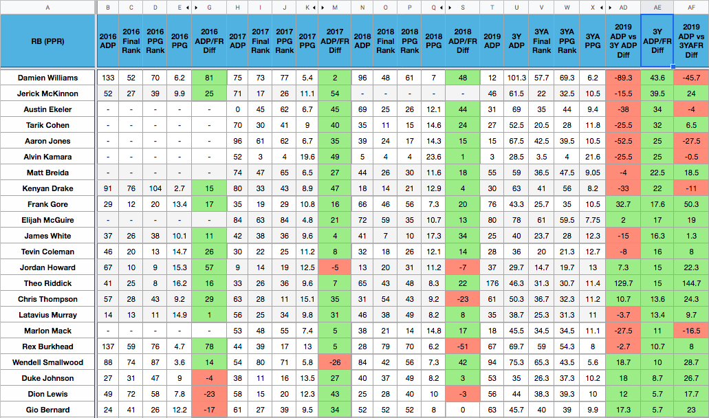 3 Year Adp Grade Vs Final Fantasy Rank Running Back
